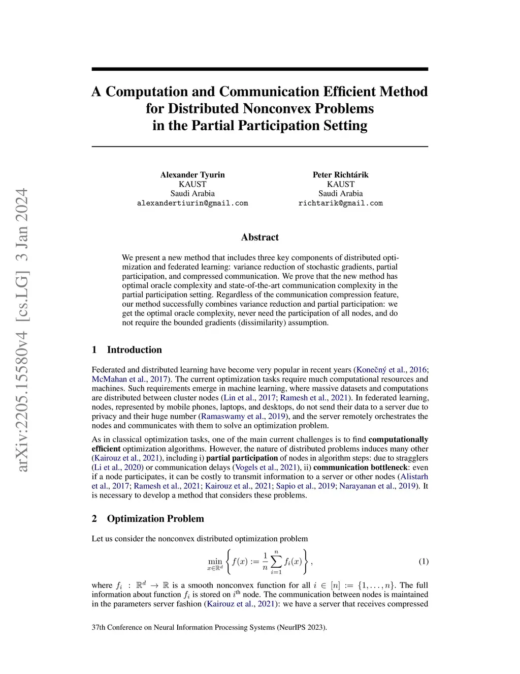 We present a new method that includes three key components of distributed optimization and federated learning: variance reduction of stochastic gradients, partial participation, and compressed communication. We prove that the new method has optimal oracle complexity and state-of-the-art communication complexity in the partial participation setting. Regardless of the communication compression feature, our method successfully combines variance reduction and partial participation: we get the optimal oracle complexity, never need the participation of all nodes, and do not require the bounded gradients (dissimilarity) assumption.