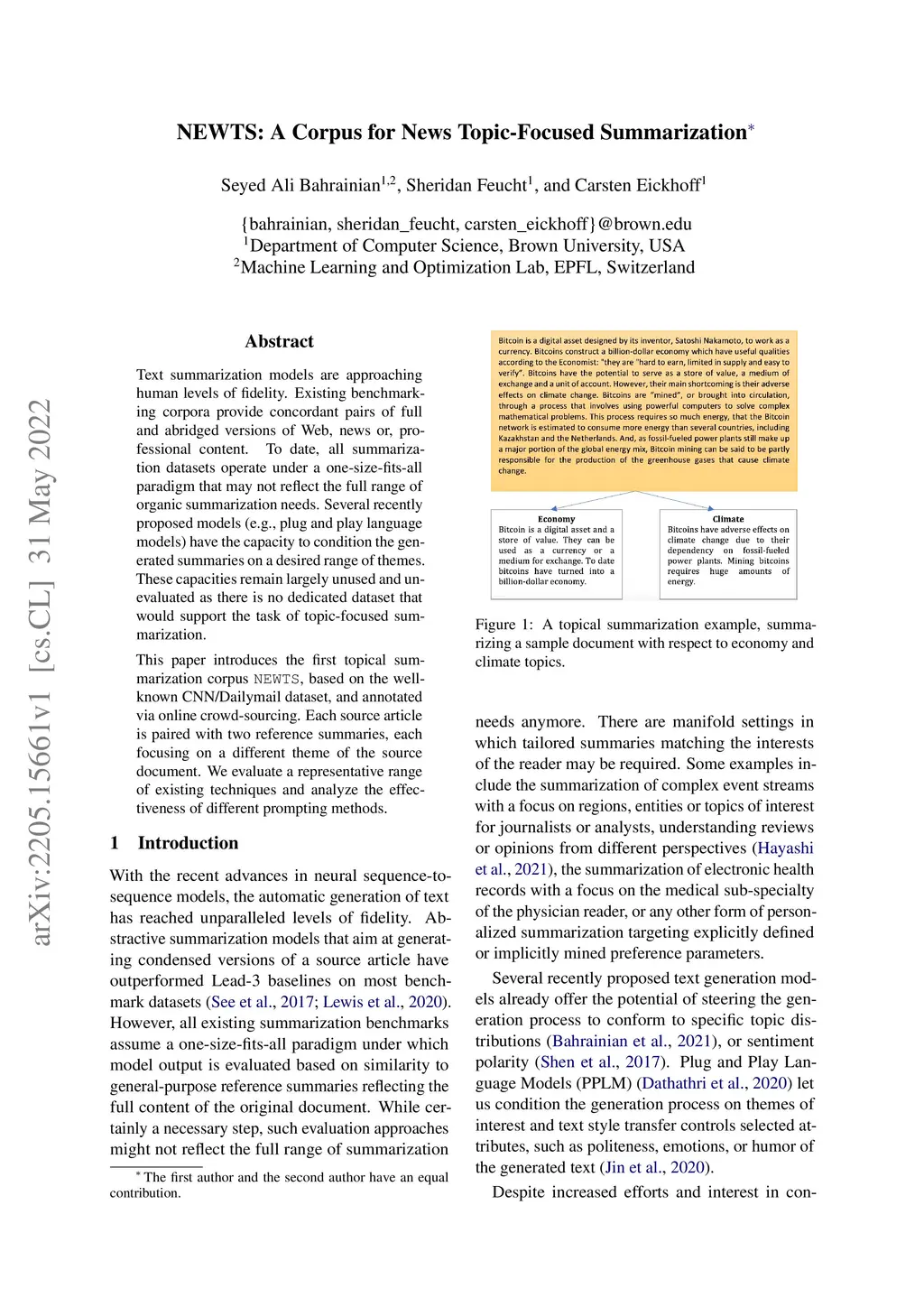 NEWTS: A Corpus for News Topic-Focused Summarization