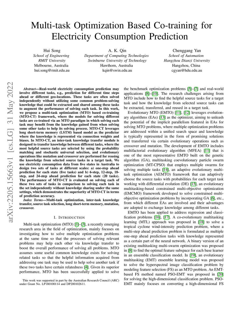 Multi-task Optimization Based Co-training for Electricity Consumption