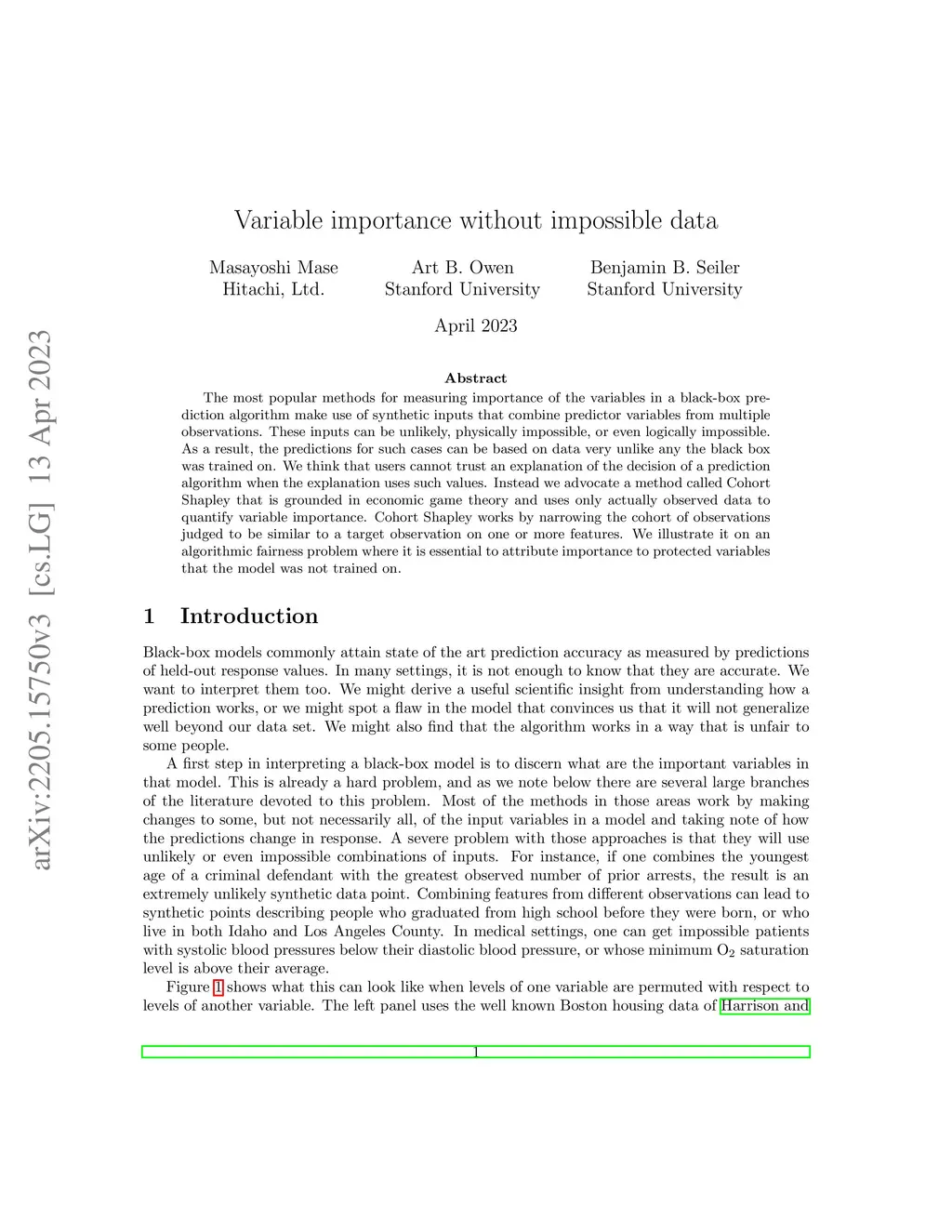 The most popular methods for measuring importance of the variables in a black box prediction algorithm make use of synthetic inputs that combine predictor variables from multiple subjects. These inputs can be unlikely, physically impossible, or even logically impossible. As a result, the predictions for such cases can be based on data very unlike any the black box was trained on. We think that users cannot trust an explanation of the decision of a prediction algorithm when the explanation uses such values. Instead we advocate a method called Cohort Shapley that is grounded in economic game theory and unlike most other game theoretic methods, it uses only actually observed data to quantify variable importance. Cohort Shapley works by narrowing the cohort of subjects judged to be similar to a target subject on one or more features. We illustrate it on an algorithmic fairness problem where it is essential to attribute importance to protected variables that the model was not trained on.