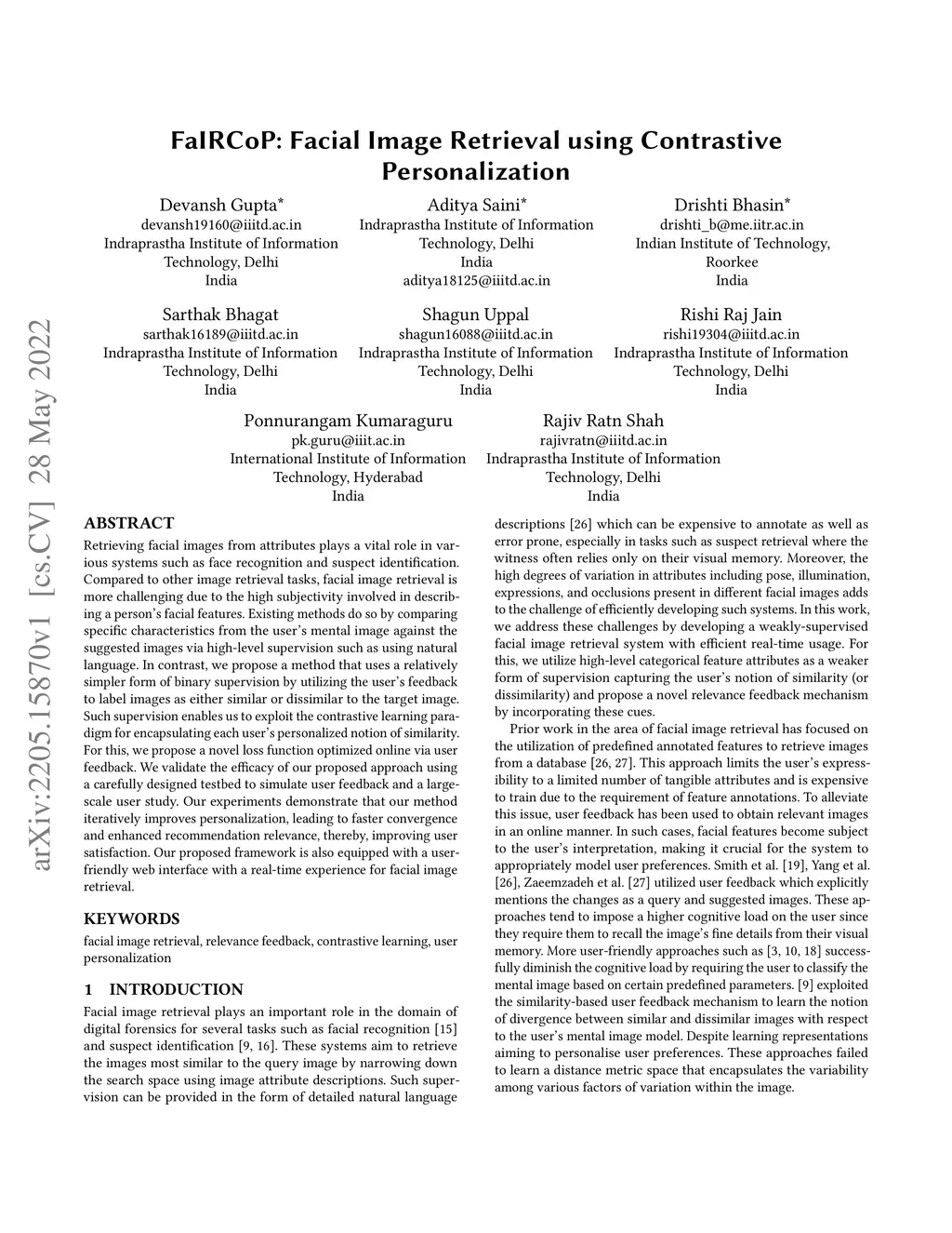 FaIRCoP: Facial Image Retrieval using Contrastive Personalization