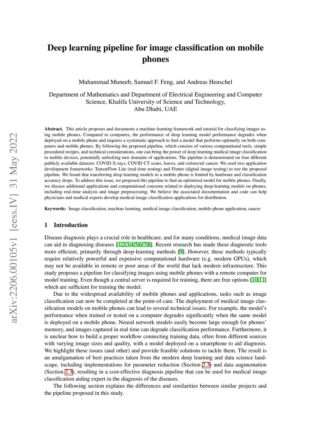 This article proposes and documents a machine-learning framework and tutorial for classifying images using mobile phones. Compared to computers, the performance of deep learning model performance degrades when deployed on a mobile phone and requires a systematic approach to find a model that performs optimally on both computers and mobile phones. By following the proposed pipeline, which consists of various computational tools, simple procedural recipes, and technical considerations, one can bring the power of deep learning medical image classification to mobile devices, potentially unlocking new domains of applications. The pipeline is demonstrated on four different publicly available datasets: COVID X-rays, COVID CT scans, leaves, and colorectal cancer. We used two application development frameworks: TensorFlow Lite (real-time testing) and Flutter (digital image testing) to test the proposed pipeline. We found that transferring deep learning models to a mobile phone is limited by hardware and classification accuracy drops. To address this issue, we proposed this pipeline to find an optimized model for mobile phones. Finally, we discuss additional applications and computational concerns related to deploying deep-learning models on phones, including real-time analysis and image preprocessing. We believe the associated documentation and code can help physicians and medical experts develop medical image classification applications for distribution.
