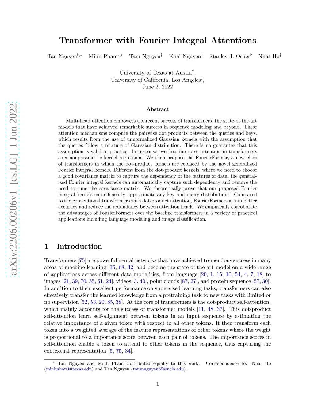 Transformer with Fourier Integral Attentions