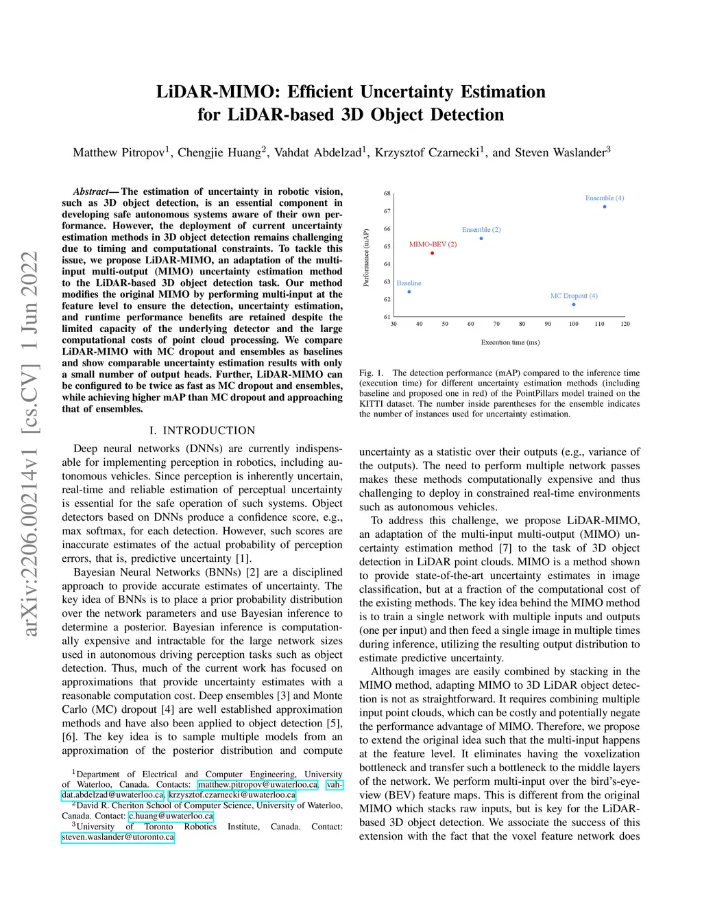 LiDAR-MIMO: Efficient Uncertainty Estimation for LiDAR-based 3D Object