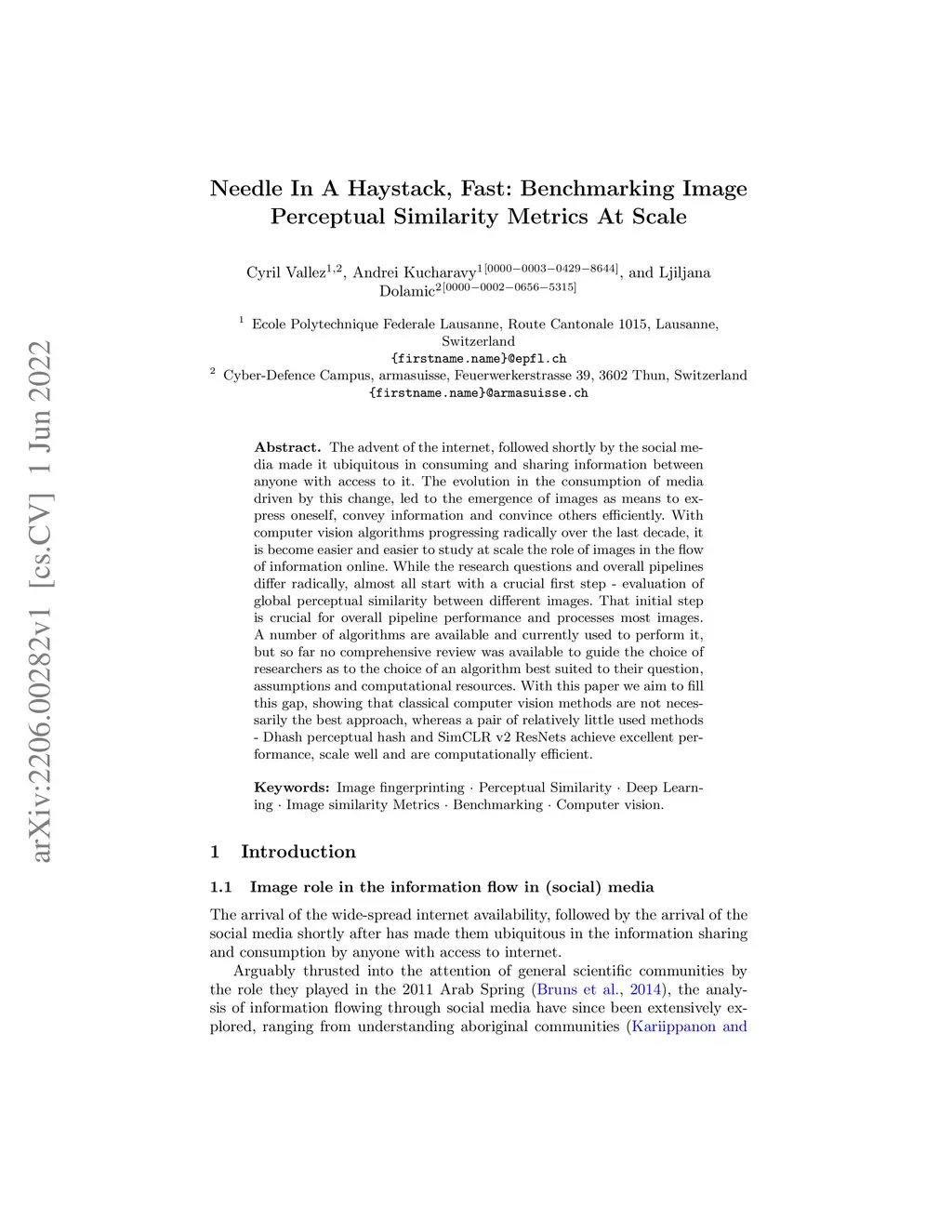 The advent of the internet, followed shortly by the social media made it ubiquitous in consuming and sharing information between anyone with access to it. The evolution in the consumption of media driven by this change, led to the emergence of images as means to express oneself, convey information and convince others efficiently. With computer vision algorithms progressing radically over the last decade, it is become easier and easier to study at scale the role of images in the flow of information online. While the research questions and overall pipelines differ radically, almost all start with a crucial first step - evaluation of global perceptual similarity between different images. That initial step is crucial for overall pipeline performance and processes most images. A number of algorithms are available and currently used to perform it, but so far no comprehensive review was available to guide the choice of researchers as to the choice of an algorithm best suited to their question, assumptions and computational resources. With this paper we aim to fill this gap, showing that classical computer vision methods are not necessarily the best approach, whereas a pair of relatively little used methods - Dhash perceptual hash and SimCLR v2 ResNets achieve excellent performance, scale well and are computationally efficient.