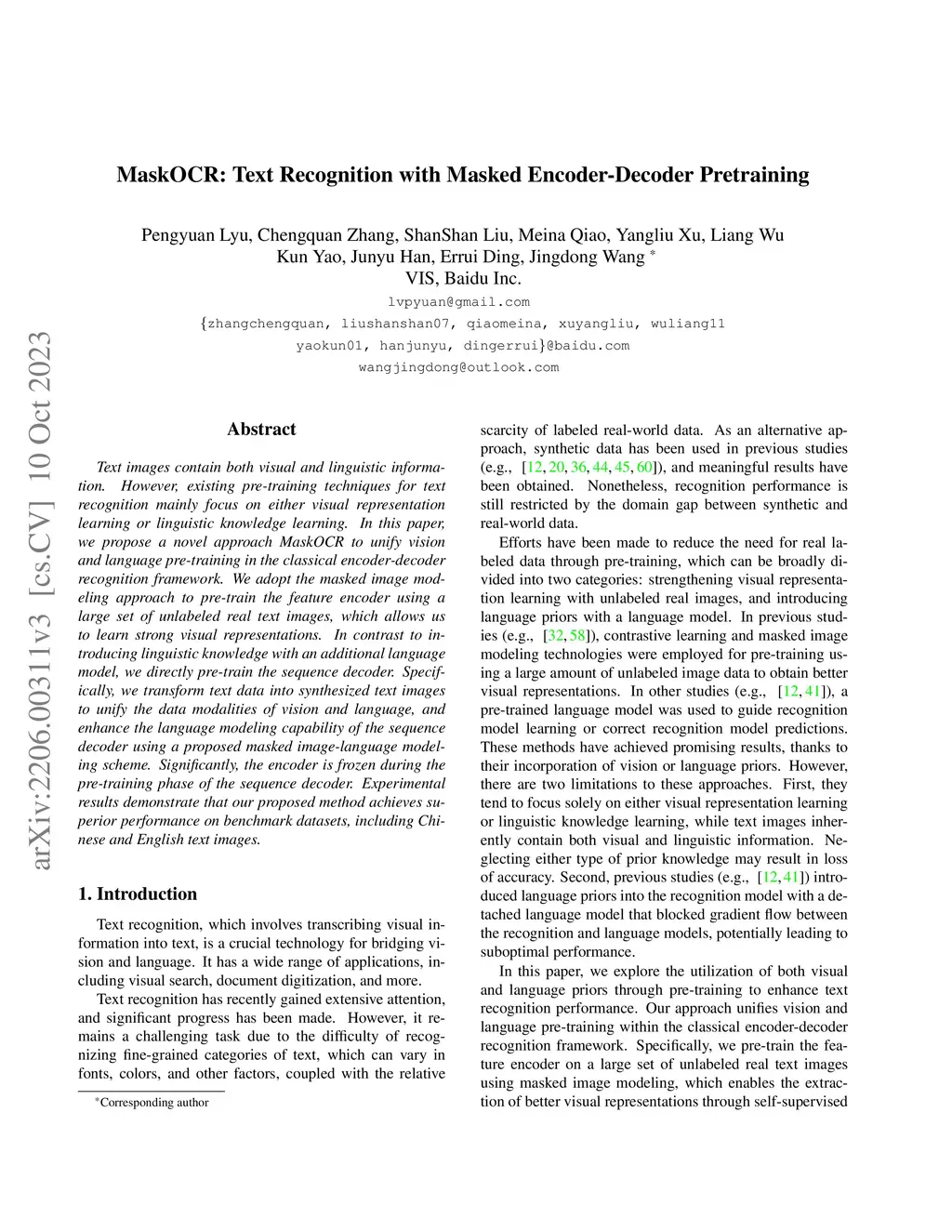 MaskOCR: Text Recognition with Masked Encoder-Decoder Pretraining
