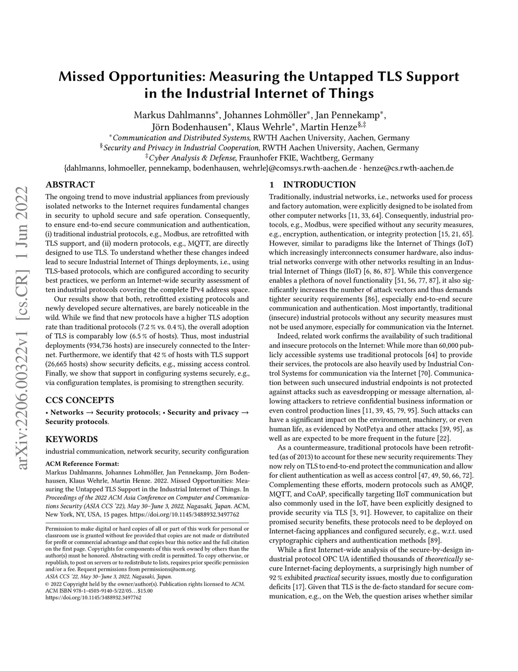 The ongoing trend to move industrial appliances from previously isolated networks to the Internet requires fundamental changes in security to uphold secure and safe operation. Consequently, to ensure end-to-end secure communication and authentication, (i) traditional industrial protocols, e.g., Modbus, are retrofitted with TLS support, and (ii) modern protocols, e.g., MQTT, are directly designed to use TLS. To understand whether these changes indeed lead to secure Industrial Internet of Things deployments, i.e., using TLS-based protocols, which are configured according to security best practices, we perform an Internet-wide security assessment of ten industrial protocols covering the complete IPv4 address space. Our results show that both, retrofitted existing protocols and newly developed secure alternatives, are barely noticeable in the wild. While we find that new protocols have a higher TLS adoption rate than traditional protocols (7.2% vs. 0.4%), the overall adoption of TLS is comparably low (6.5% of hosts). Thus, most industrial deployments (934,736 hosts) are insecurely connected to the Internet. Furthermore, we identify that 42% of hosts with TLS support (26,665 hosts) show security deficits, e.g., missing access control. Finally, we show that support in configuring systems securely, e.g., via configuration templates, is promising to strengthen security.