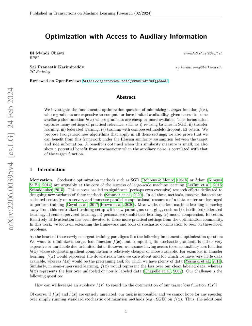 We investigate the fundamental optimization question of minimizing a target function , whose gradients are expensive to compute or have limited availability, given access to some auxiliary side function whose gradients are cheap or more available. This formulation captures many settings of practical relevance, such as i) re-using batches in SGD, ii) transfer learning, iii) federated learning, iv) training with compressed models/dropout, Et cetera. We propose two generic new algorithms that apply in all these settings; we also prove that we can benefit from this framework under the Hessian similarity assumption between the target and side information. A benefit is obtained when this similarity measure is small; we also show a potential benefit from stochasticity when the auxiliary noise is correlated with that of the target function.