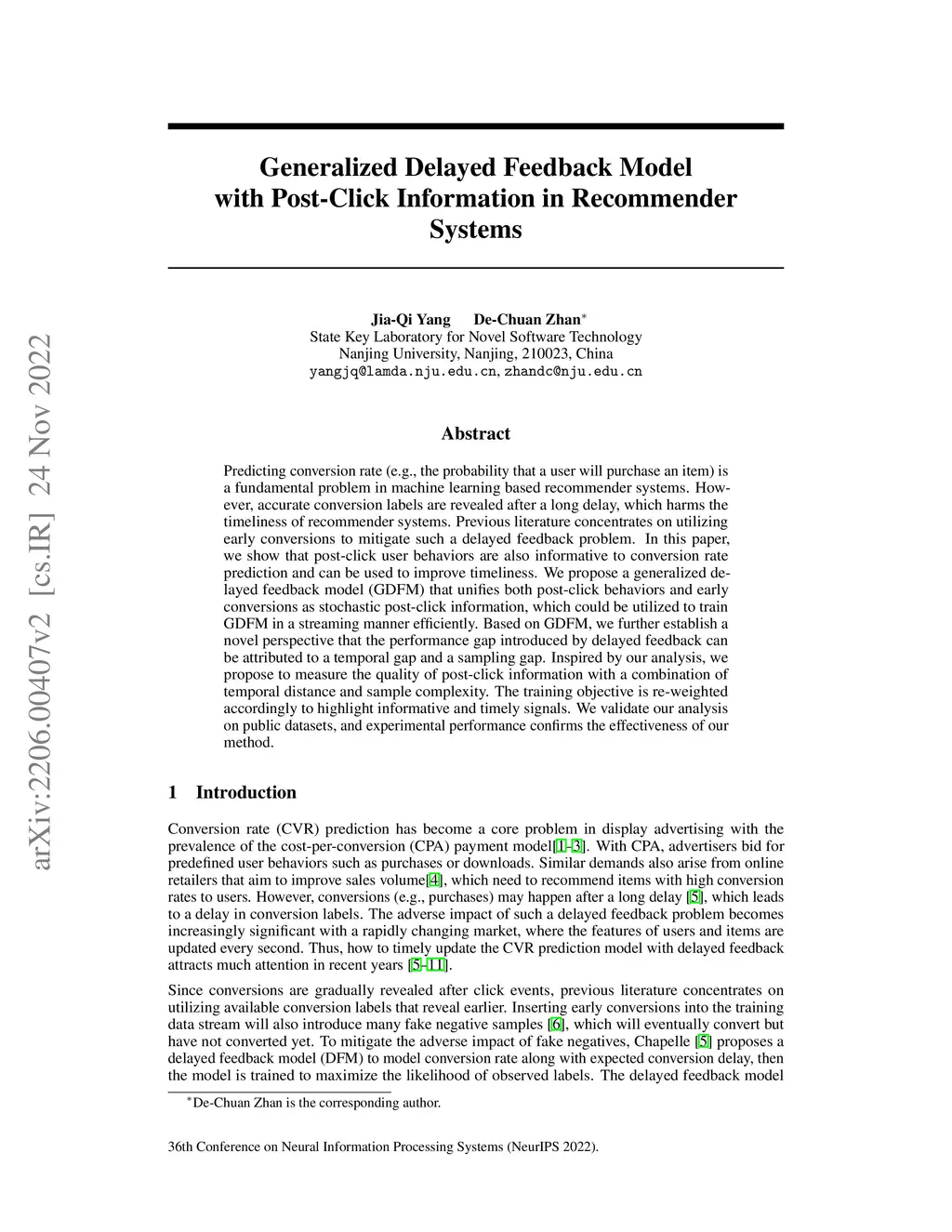 Predicting conversion rate (e.g., the probability that a user will purchase an item) is a fundamental problem in machine learning based recommender systems. However, accurate conversion labels are revealed after a long delay, which harms the timeliness of recommender systems. Previous literature concentrates on utilizing early conversions to mitigate such a delayed feedback problem. In this paper, we show that post-click user behaviors are also informative to conversion rate prediction and can be used to improve timeliness. We propose a generalized delayed feedback model (GDFM) that unifies both post-click behaviors and early conversions as stochastic post-click information, which could be utilized to train GDFM in a streaming manner efficiently. Based on GDFM, we further establish a novel perspective that the performance gap introduced by delayed feedback can be attributed to a temporal gap and a sampling gap. Inspired by our analysis, we propose to measure the quality of post-click information with a combination of temporal distance and sample complexity. The training objective is re-weighted accordingly to highlight informative and timely signals. We validate our analysis on public datasets, and experimental performance confirms the effectiveness of our method.