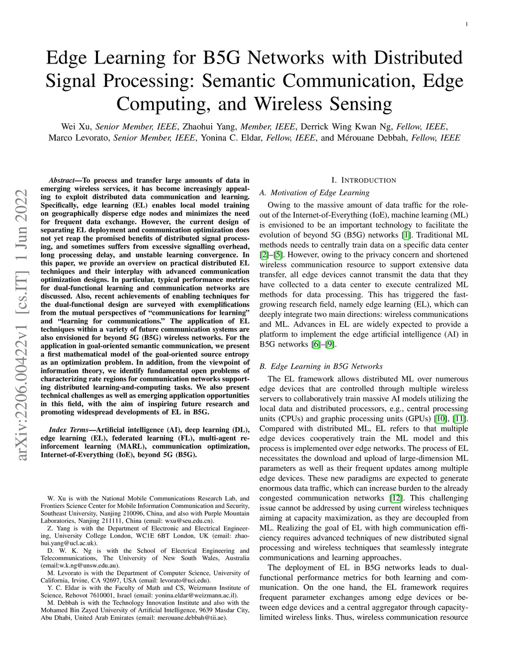 Edge Learning for B5G Networks with Distributed Signal Processing: