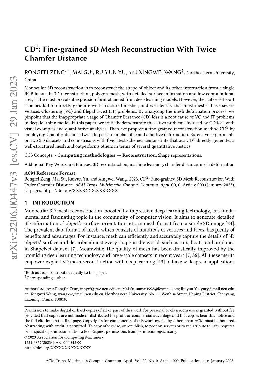 CD: Fine-grained 3D Mesh Reconstruction With Twice Chamfer Distance