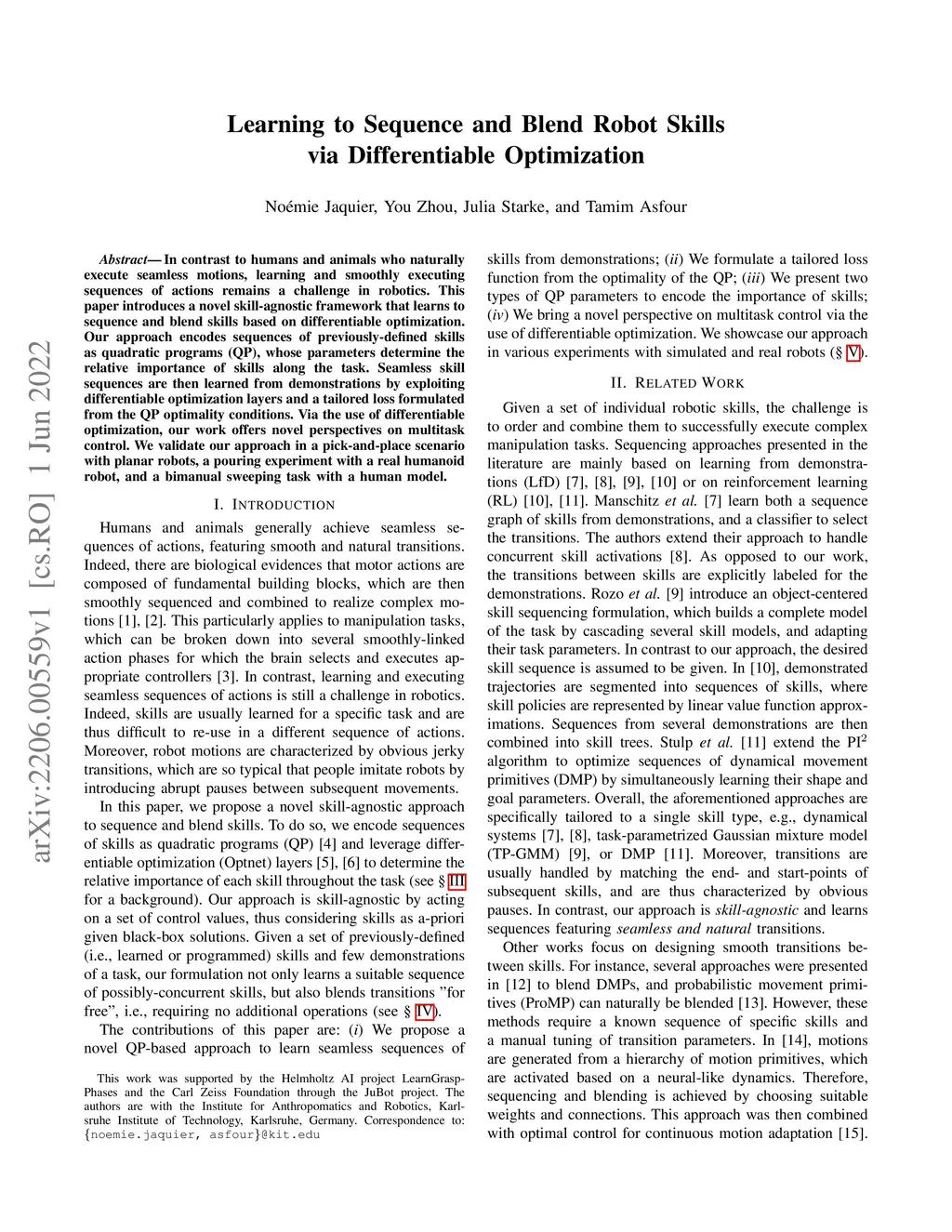 Learning to Sequence and Blend Robot Skills via Differentiable