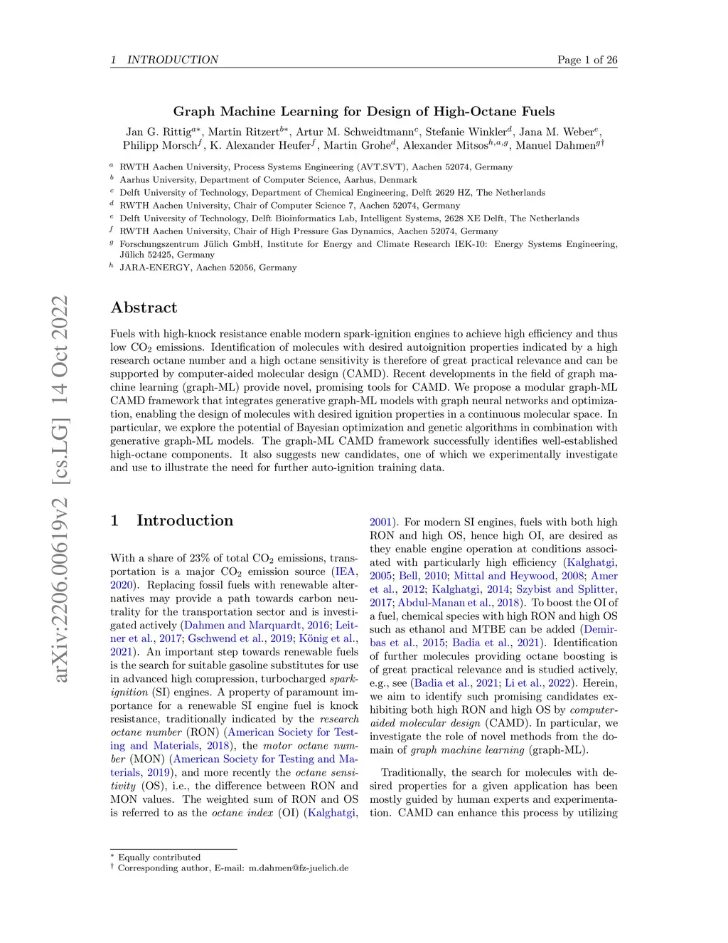 Fuels with high-knock resistance enable modern spark-ignition engines to achieve high efficiency and thus low CO2 emissions. Identification of molecules with desired autoignition properties indicated by a high research octane number and a high octane sensitivity is therefore of great practical relevance and can be supported by computer-aided molecular design (CAMD). Recent developments in the field of graph machine learning (graph-ML) provide novel, promising tools for CAMD. We propose a modular graph-ML CAMD framework that integrates generative graph-ML models with graph neural networks and optimization, enabling the design of molecules with desired ignition properties in a continuous molecular space. In particular, we explore the potential of Bayesian optimization and genetic algorithms in combination with generative graph-ML models. The graph-ML CAMD framework successfully identifies well-established high-octane components. It also suggests new candidates, one of which we experimentally investigate and use to illustrate the need for further auto-ignition training data.