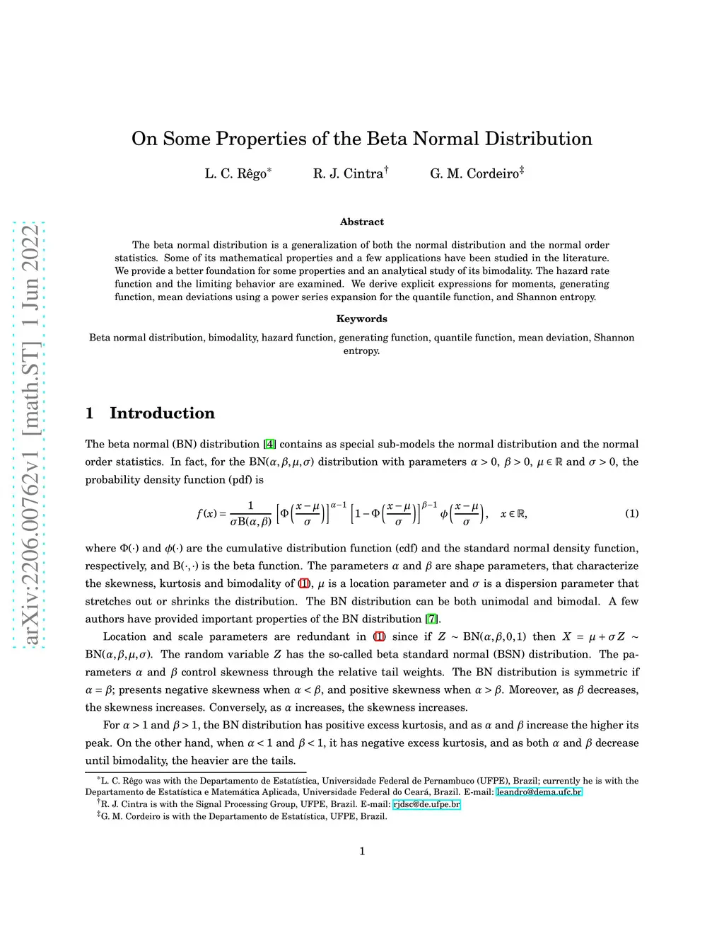 The beta normal distribution is a generalization of both the normal distribution and the normal order statistics. Some of its mathematical properties and a few applications have been studied in the literature. We provide a better foundation for some properties and an analytical study of its bimodality. The hazard rate function and the limiting behavior are examined. We derive explicit expressions for moments, generating function, mean deviations using a power series expansion for the quantile function, and Shannon entropy.