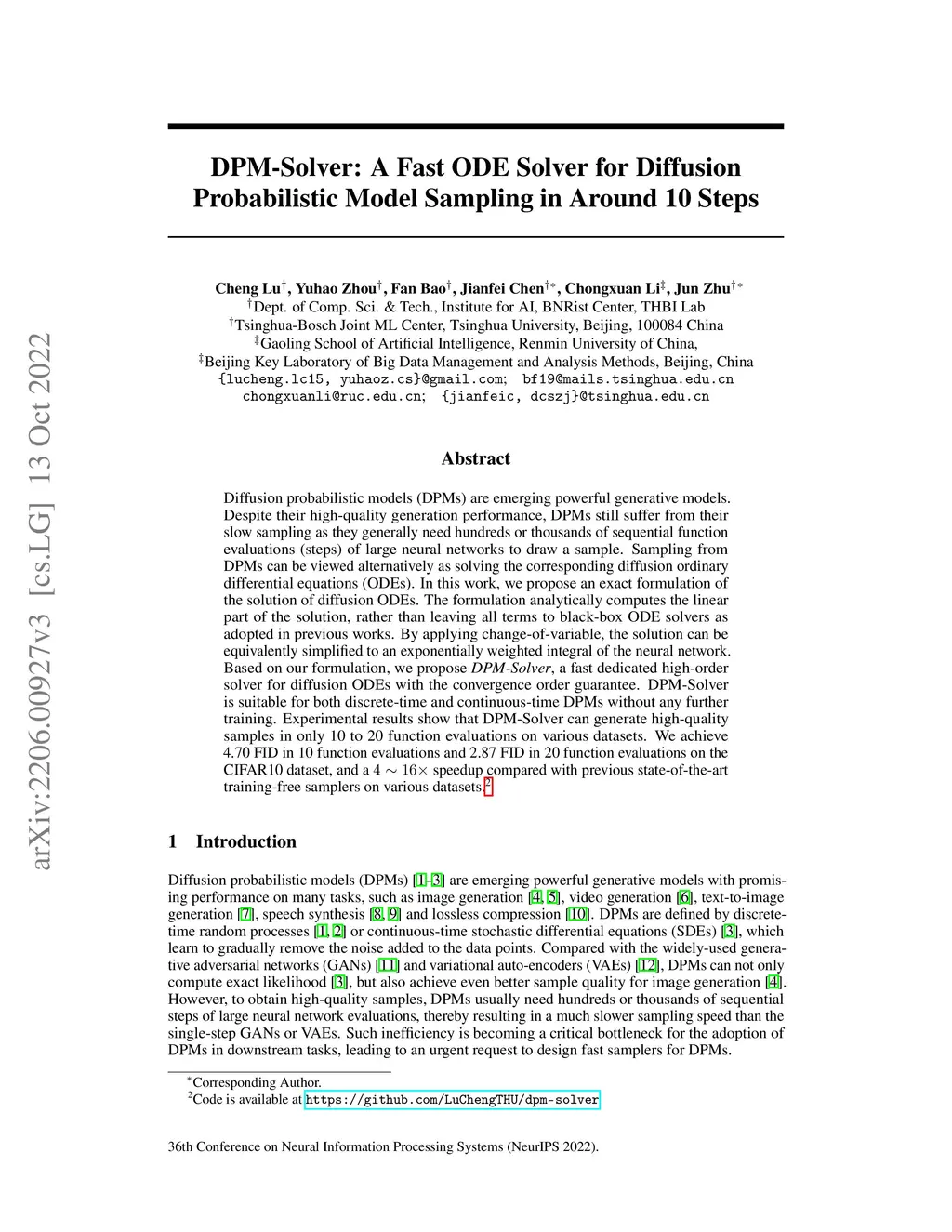 DPM-Solver: A Fast ODE Solver for Diffusion Probabilistic Model Sampling