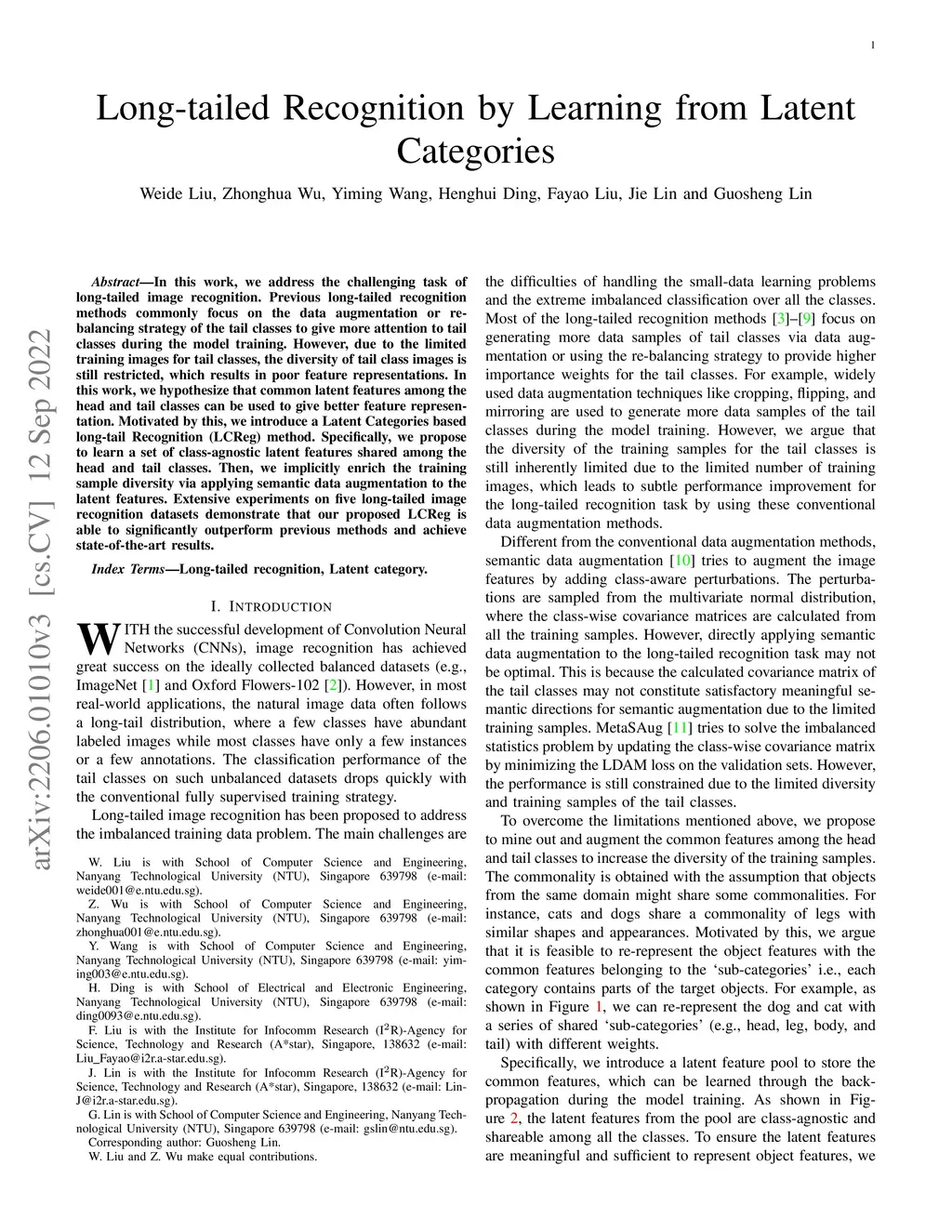 In this work, we address the challenging task of long-tailed image recognition. Previous long-tailed recognition methods commonly focus on the data augmentation or re-balancing strategy of the tail classes to give more attention to tail classes during the model training. However, due to the limited training images for tail classes, the diversity of tail class images is still restricted, which results in poor feature representations. In this work, we hypothesize that common latent features among the head and tail classes can be used to give better feature representation. Motivated by this, we introduce a Latent Categories based long-tail Recognition (LCReg) method. Specifically, we propose to learn a set of class-agnostic latent features shared among the head and tail classes. Then, we implicitly enrich the training sample diversity via applying semantic data augmentation to the latent features. Extensive experiments on five long-tailed image recognition datasets demonstrate that our proposed LCReg is able to significantly outperform previous methods and achieve state-of-the-art results.