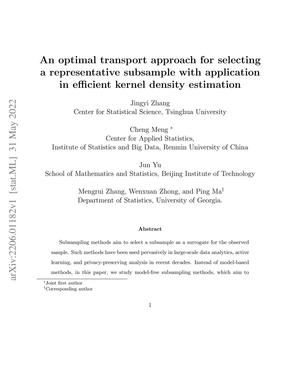 Subsampling methods aim to select a subsample as a surrogate for the observed sample. Such methods have been used pervasively in large-scale data analytics, active learning, and privacy-preserving analysis in recent decades. Instead of model-based methods, in this paper, we study model-free subsampling methods, which aim to identify a subsample that is not confined by model assumptions. Existing model-free subsampling methods are usually built upon clustering techniques or kernel tricks. Most of these methods suffer from either a large computational burden or a theoretical weakness. In particular, the theoretical weakness is that the empirical distribution of the selected subsample may not necessarily converge to the population distribution. Such computational and theoretical limitations hinder the broad applicability of model-free subsampling methods in practice. We propose a novel model-free subsampling method by utilizing optimal transport techniques. Moreover, we develop an efficient subsampling algorithm that is adaptive to the unknown probability density function. Theoretically, we show the selected subsample can be used for efficient density estimation by deriving the convergence rate for the proposed subsample kernel density estimator. We also provide the optimal bandwidth for the proposed estimator. Numerical studies on synthetic and real-world datasets demonstrate the performance of the proposed method is superior.