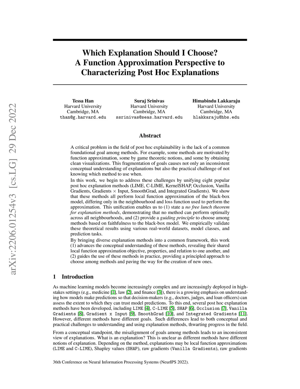 A critical problem in the field of post hoc explainability is the lack of a common foundational goal among methods. For example, some methods are motivated by function approximation, some by game theoretic notions, and some by obtaining clean visualizations. This fragmentation of goals causes not only an inconsistent conceptual understanding of explanations but also the practical challenge of not knowing which method to use when. In this work, we begin to address these challenges by unifying eight popular post hoc explanation methods (LIME, C-LIME, KernelSHAP, Occlusion, Vanilla Gradients, Gradients x Input, SmoothGrad, and Integrated Gradients). We show that these methods all perform local function approximation of the black-box model, differing only in the neighbourhood and loss function used to perform the approximation. This unification enables us to (1) state a no free lunch theorem for explanation methods, demonstrating that no method can perform optimally across all neighbourhoods, and (2) provide a guiding principle to choose among methods based on faithfulness to the black-box model. We empirically validate these theoretical results using various real-world datasets, model classes, and prediction tasks. By bringing diverse explanation methods into a common framework, this work (1) advances the conceptual understanding of these methods, revealing their shared local function approximation objective, properties, and relation to one another, and (2) guides the use of these methods in practice, providing a principled approach to choose among methods and paving the way for the creation of new ones.
