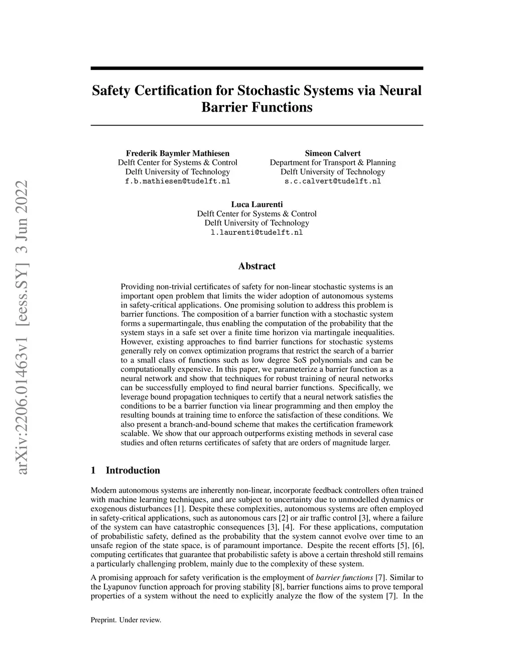 Safety Certification for Stochastic Systems via Neural Barrier Functions