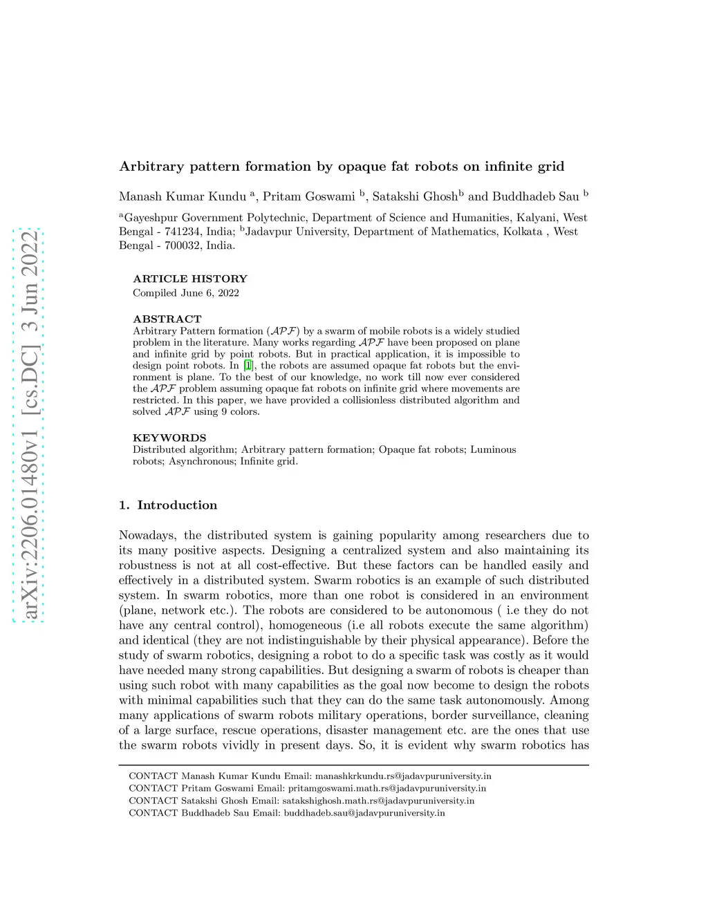 Arbitrary pattern formation by opaque fat robots on infinite grid