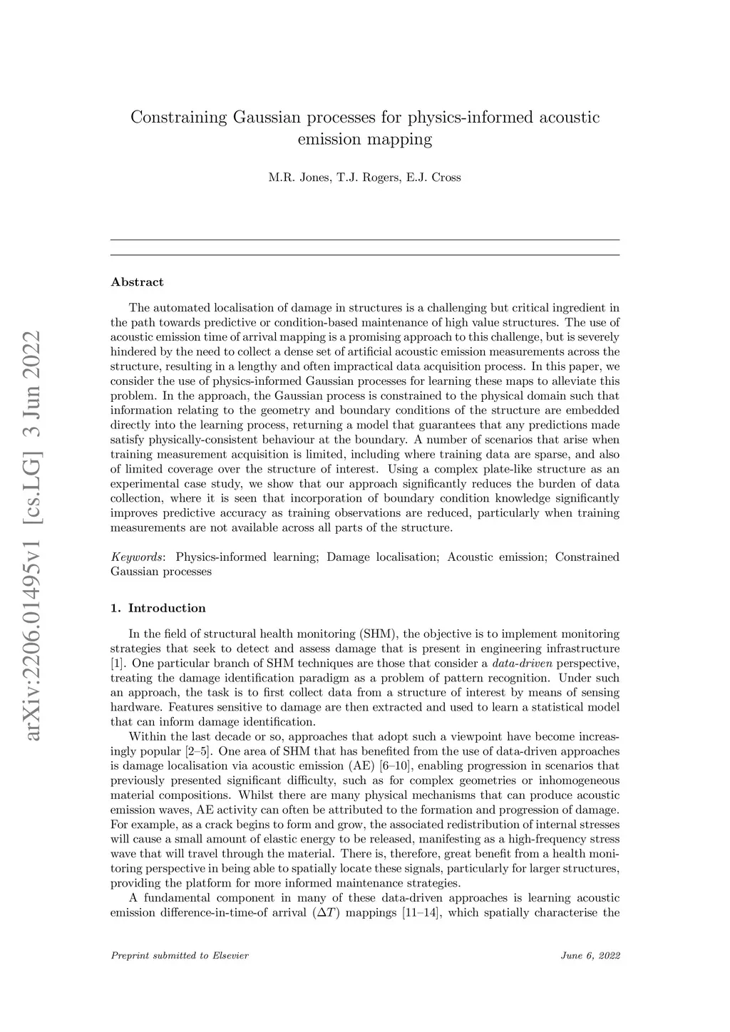 The automated localisation of damage in structures is a challenging but critical ingredient in the path towards predictive or condition-based maintenance of high value structures. The use of acoustic emission time of arrival mapping is a promising approach to this challenge, but is severely hindered by the need to collect a dense set of artificial acoustic emission measurements across the structure, resulting in a lengthy and often impractical data acquisition process. In this paper, we consider the use of physics-informed Gaussian processes for learning these maps to alleviate this problem. In the approach, the Gaussian process is constrained to the physical domain such that information relating to the geometry and boundary conditions of the structure are embedded directly into the learning process, returning a model that guarantees that any predictions made satisfy physically-consistent behaviour at the boundary. A number of scenarios that arise when training measurement acquisition is limited, including where training data are sparse, and also of limited coverage over the structure of interest. Using a complex plate-like structure as an experimental case study, we show that our approach significantly reduces the burden of data collection, where it is seen that incorporation of boundary condition knowledge significantly improves predictive accuracy as training observations are reduced, particularly when training measurements are not available across all parts of the structure.