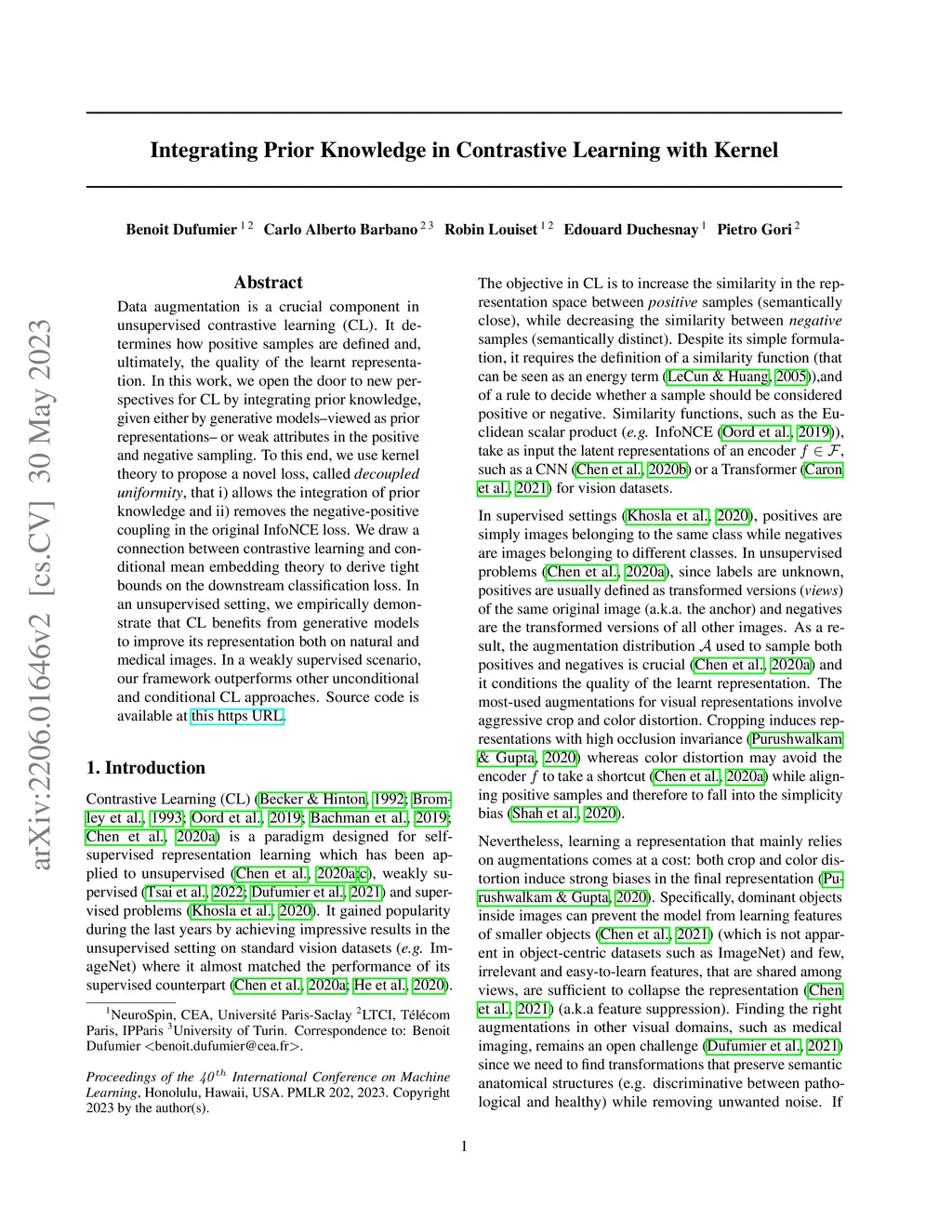 Integrating Prior Knowledge in Contrastive Learning with Kernel