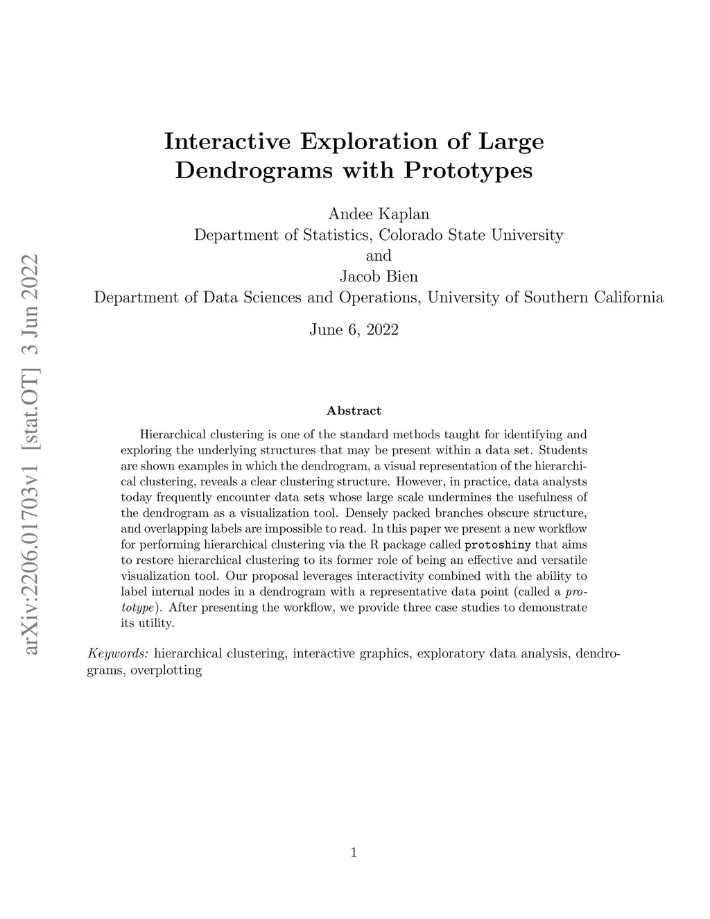 Hierarchical clustering is one of the standard methods taught for identifying and exploring the underlying structures that may be present within a data set. Students are shown examples in which the dendrogram, a visual representation of the hierarchical clustering, reveals a clear clustering structure. However, in practice, data analysts today frequently encounter data sets whose large scale undermines the usefulness of the dendrogram as a visualization tool. Densely packed branches obscure structure, and overlapping labels are impossible to read. In this paper we present a new workflow for performing hierarchical clustering via the R package called protoshiny that aims to restore hierarchical clustering to its former role of being an effective and versatile visualization tool. Our proposal leverages interactivity combined with the ability to label internal nodes in a dendrogram with a representative data point (called a prototype). After presenting the workflow, we provide three case studies to demonstrate its utility.