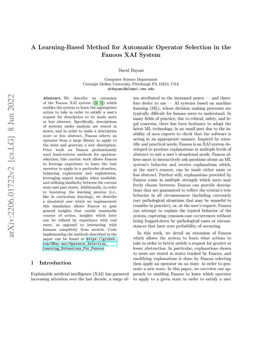 We describe an extension of the Fanoos XAI system [Bayani et al 2022] which enables the system to learn the appropriate action to take in order to satisfy a user's request for description to be made more or less abstract. Specifically, descriptions of systems under analysis are stored in states, and in order to make a description more or less abstract, Fanoos selects an operator from a large library to apply to the state and generate a new description. Prior work on Fanoos predominately used hand-written methods for operator-selection; this current work allows Fanoos to leverage experience to learn the best operator to apply in a particular situation, balancing exploration and exploitation, leveraging expert insights when available, and utilizing similarity between the current state and past states. Additionally, in order to bootstrap the learning process (i.e., like in curriculum learning), we describe a simulated user which we implemented; this simulation allows Fanoos to gain general insights that enable reasonable courses of action, insights which later can be refined by experience with real users, as opposed to interacting with humans completely from scratch. Code implementing the methods described in the paper can be found at https://github/DBay-ani/Operator_Selection_Learning_Extensions_For_Fanoos.