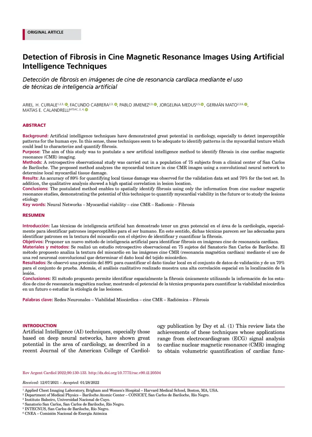 Detection of Fibrosis in Cine Magnetic Resonance Images Using Artificial
