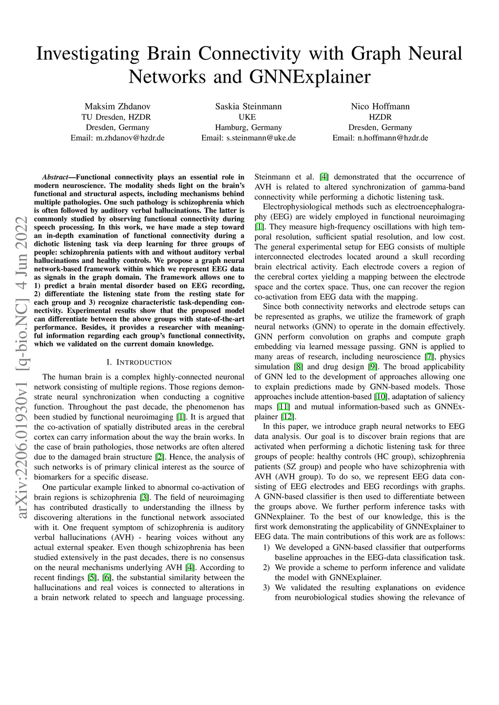 Functional connectivity plays an essential role in modern neuroscience. The modality sheds light on the brain's functional and structural aspects, including mechanisms behind multiple pathologies. One such pathology is schizophrenia which is often followed by auditory verbal hallucinations. The latter is commonly studied by observing functional connectivity during speech processing. In this work, we have made a step toward an in-depth examination of functional connectivity during a dichotic listening task via deep learning for three groups of people: schizophrenia patients with and without auditory verbal hallucinations and healthy controls. We propose a graph neural network-based framework within which we represent EEG data as signals in the graph domain. The framework allows one to 1) predict a brain mental disorder based on EEG recording, 2) differentiate the listening state from the resting state for each group and 3) recognize characteristic task-depending connectivity. Experimental results show that the proposed model can differentiate between the above groups with state-of-the-art performance. Besides, it provides a researcher with meaningful information regarding each group's functional connectivity, which we validated on the current domain knowledge.