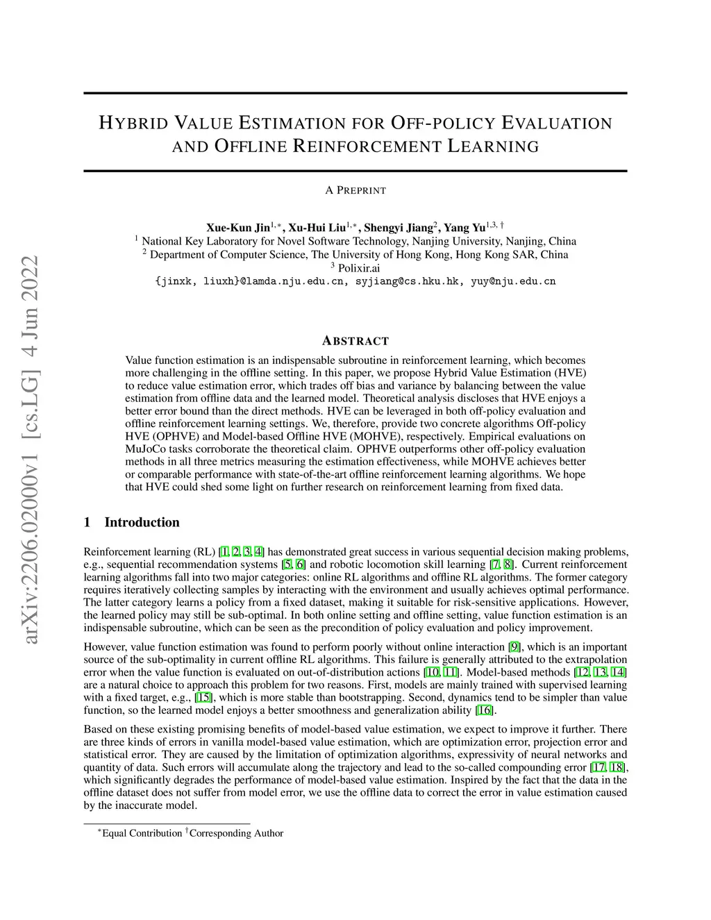 Hybrid Value Estimation for Off-policy Evaluation and Offline