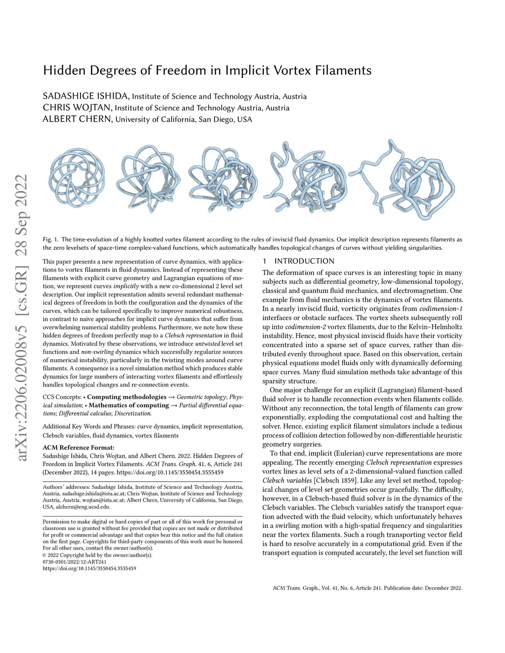 This paper presents a new representation of curve dynamics, with applications to vortex filaments in fluid dynamics. Instead of representing these filaments with explicit curve geometry and Lagrangian equations of motion, we represent curves implicitly with a new co-dimensional 2 level set description. Our implicit representation admits several redundant mathematical degrees of freedom in both the configuration and the dynamics of the curves, which can be tailored specifically to improve numerical robustness, in contrast to naive approaches for implicit curve dynamics that suffer from overwhelming numerical stability problems. Furthermore, we note how these hidden degrees of freedom perfectly map to a Clebsch representation in fluid dynamics. Motivated by these observations, we introduce untwisted level set functions and non-swirling dynamics which successfully regularize sources of numerical instability, particularly in the twisting modes around curve filaments. A consequence is a novel simulation method which produces stable dynamics for large numbers of interacting vortex filaments and effortlessly handles topological changes and re-connection events.