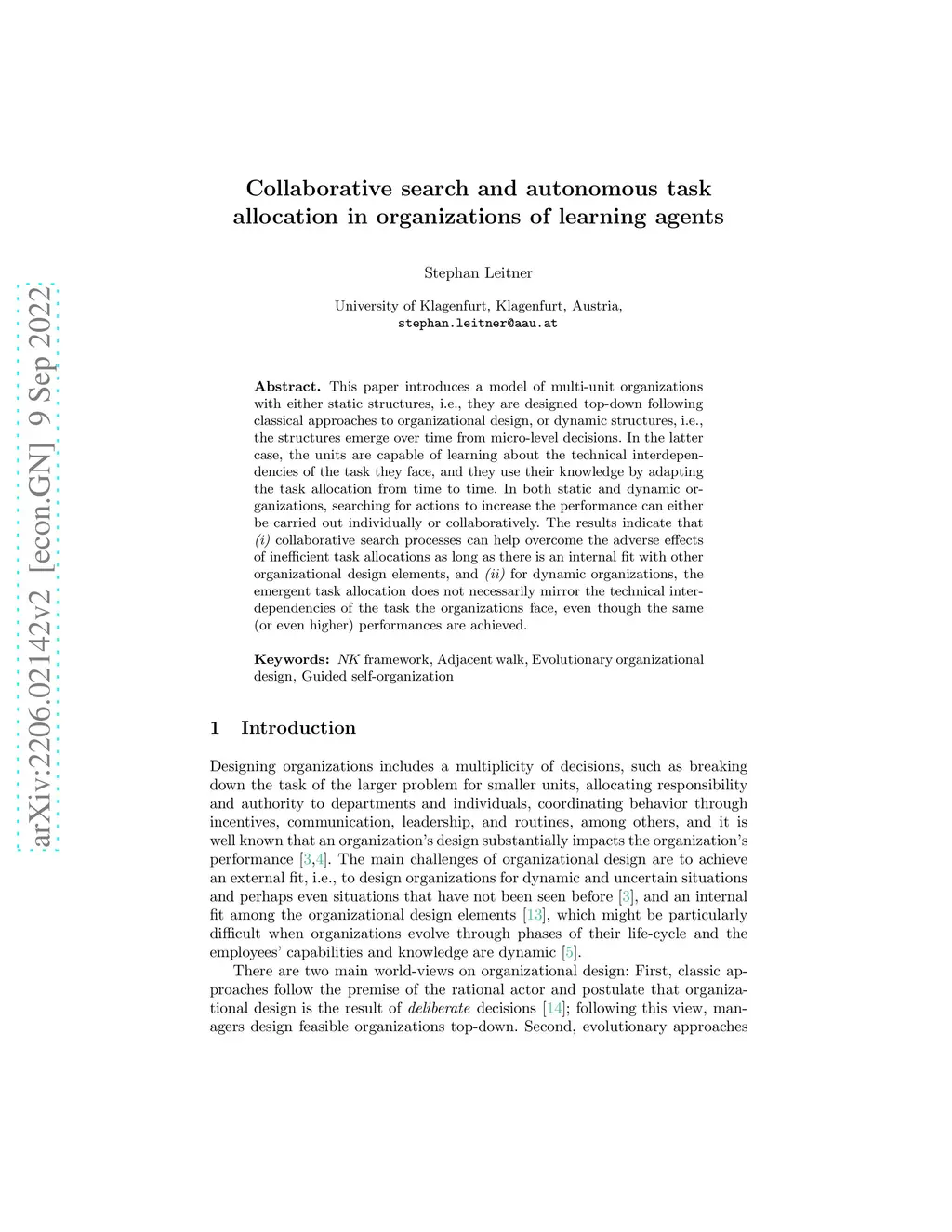 Collaborative search and autonomous task allocation in organizations of