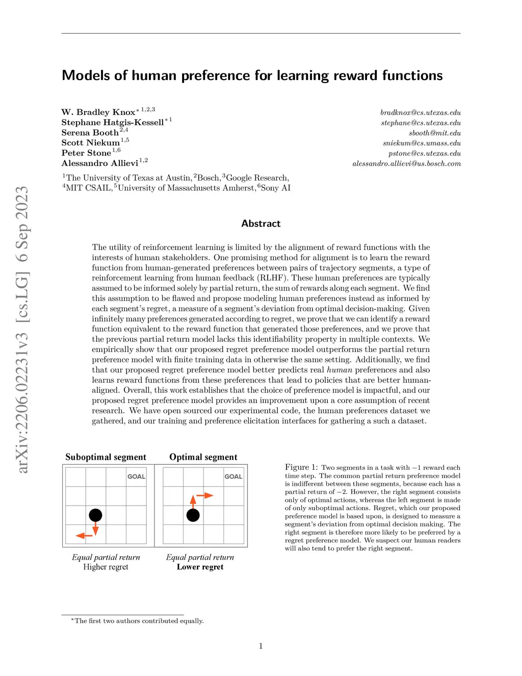 Models of human preference for learning reward functions