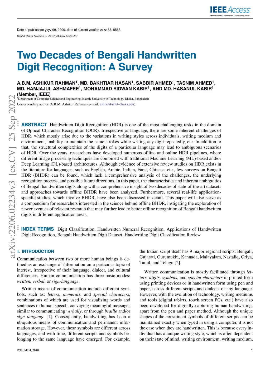 Two Decades of Bengali Handwritten Digit Recognition: A Survey