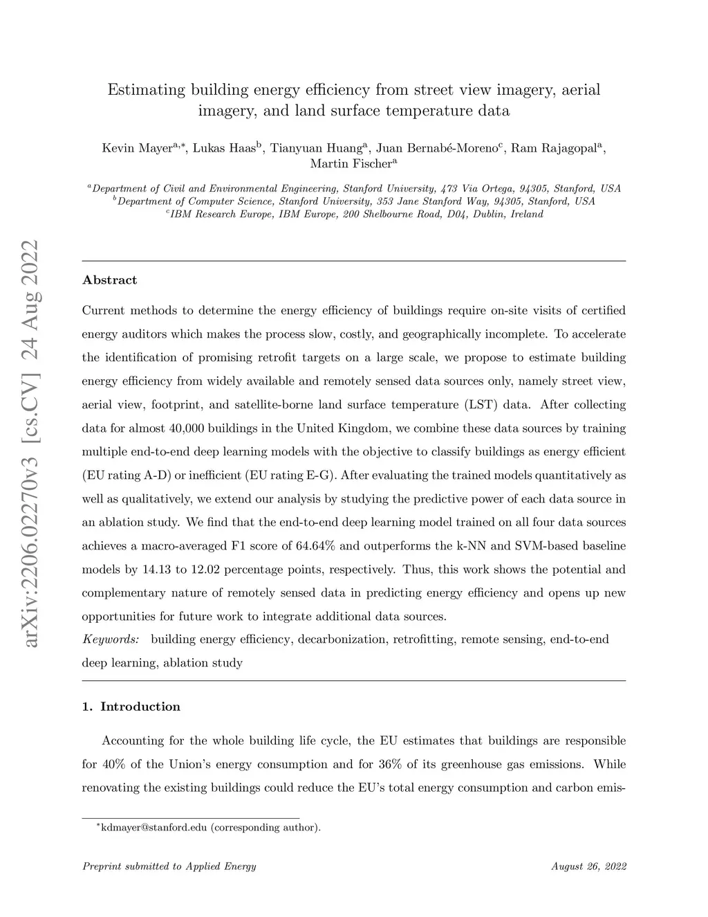 Estimating building energy efficiency from street view imagery, aerial