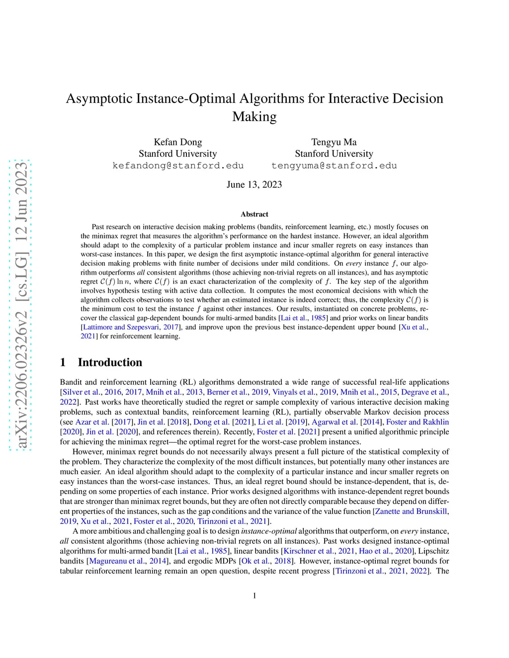 Asymptotic Instance-Optimal Algorithms for Interactive Decision Making