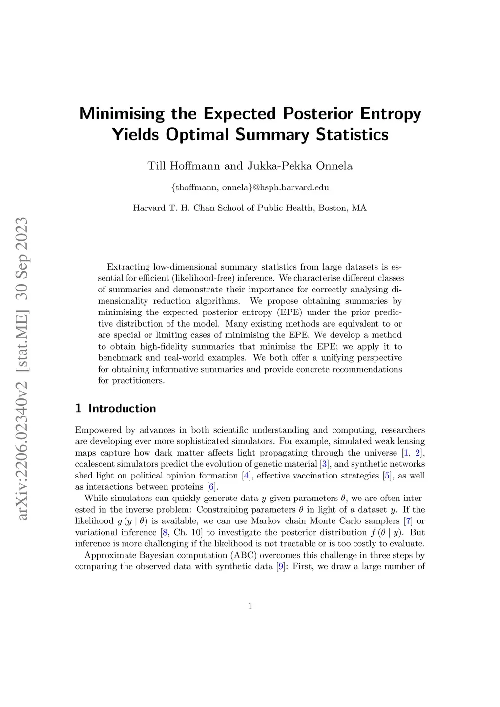 Extracting low-dimensional summary statistics from large datasets is essential for efficient (likelihood-free) inference. We characterize three different classes of summaries and demonstrate their importance for correctly analyzing dimensionality reduction algorithms. We demonstrate that minimizing the expected posterior entropy (EPE) under the prior predictive distribution of the model provides a unifying principle that subsumes many existing methods; they are shown to be equivalent to, or special or limiting cases of, minimizing the EPE. We offer a unifying framework for obtaining informative summaries and propose a practical method using conditional density estimation to learn high-fidelity summaries automatically. We evaluate this approach on diverse problems, including a challenging benchmark model with a multi-modal posterior, a population genetics model, and a dynamic network model of growing trees. The results show that EPE-minimizing summaries can lead to posterior inference that is competitive with, and in some cases superior to, dedicated likelihood-based approaches, providing a powerful and general tool for practitioners.