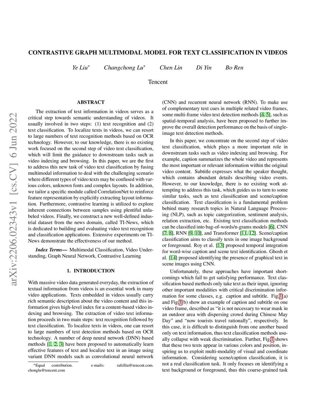 Contrastive Graph Multimodal Model for Text Classification in Videos