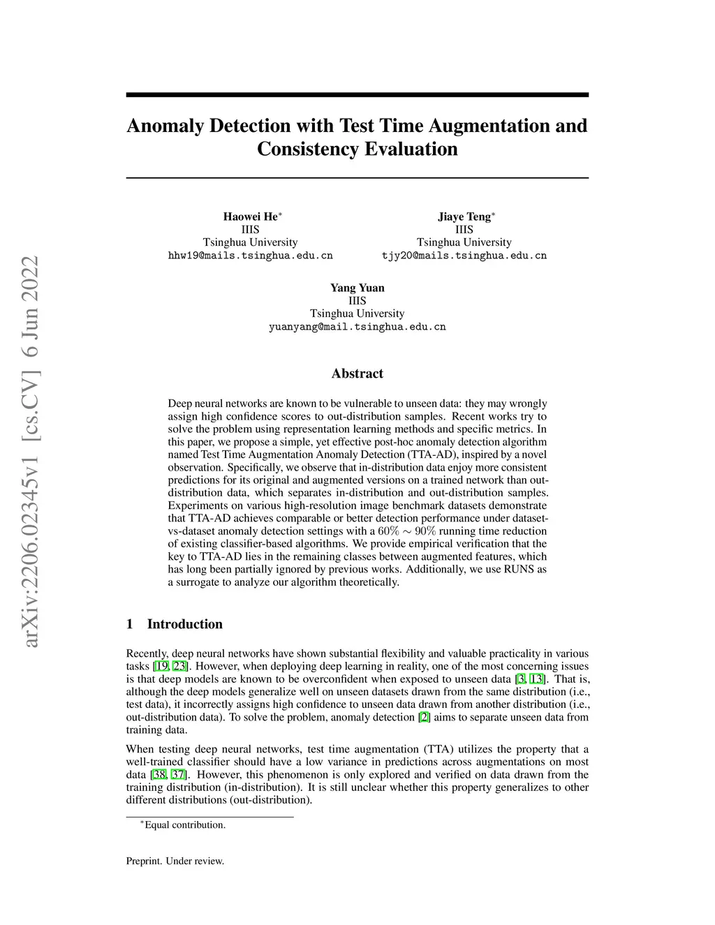 Anomaly Detection with Test Time Augmentation and Consistency Evaluation