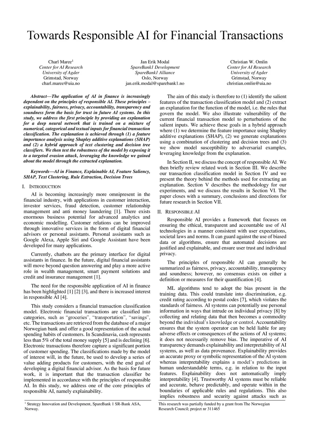 Towards Responsible AI for Financial Transactions