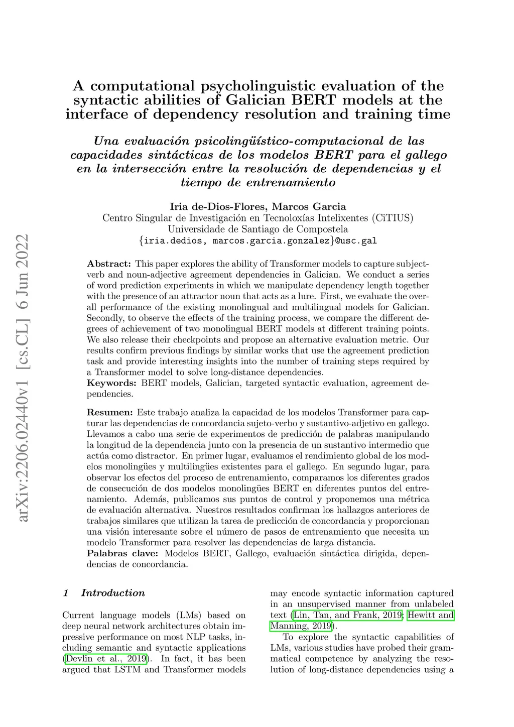 of Galician BERT models at the interface of dependency resolution and