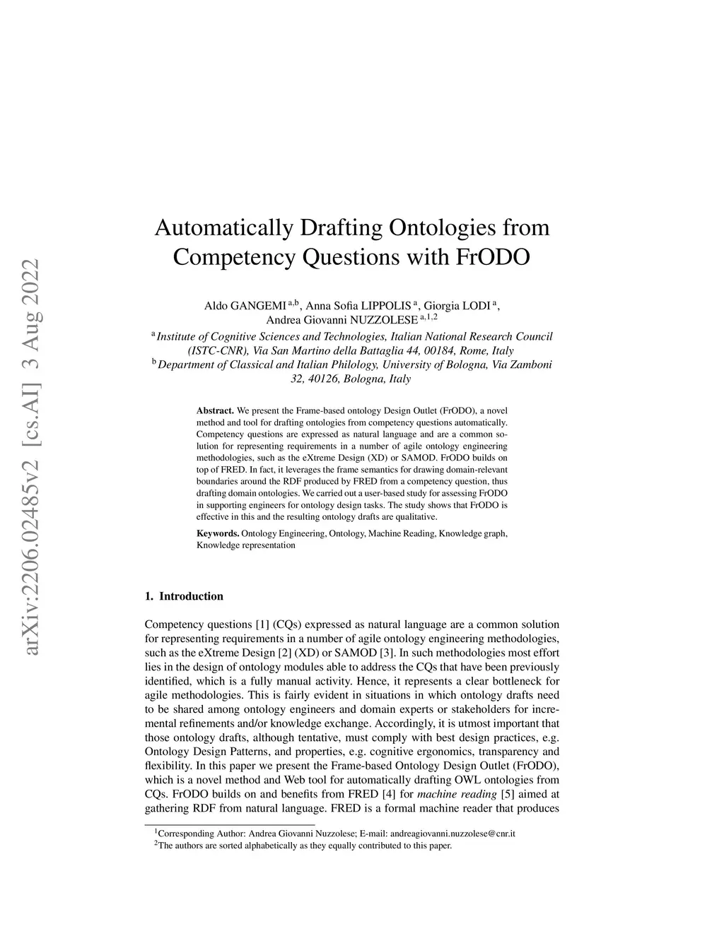 Automatically Drafting Ontologies from Competency Questions with FrODO