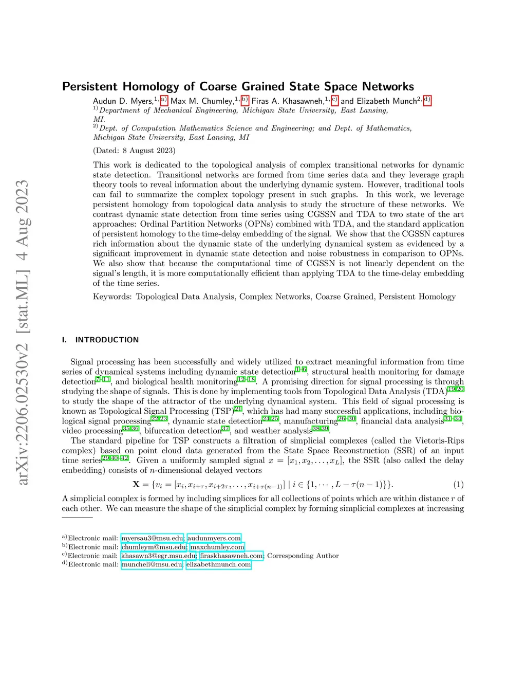 Persistent Homology of Coarse Grained State Space Networks