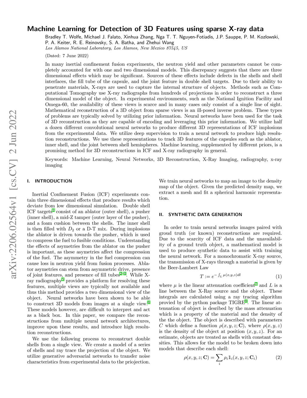 In many inertial confinement fusion experiments, the neutron yield and other parameters cannot be completely accounted for with one and two dimensional models. This discrepancy suggests that there are three dimensional effects which may be significant. Sources of these effects include defects in the shells and shell interfaces, the fill tube of the capsule, and the joint feature in double shell targets. Due to their ability to penetrate materials, X-rays are used to capture the internal structure of objects. Methods such as Computational Tomography use X-ray radiographs from hundreds of projections in order to reconstruct a three dimensional model of the object. In experimental environments, such as the National Ignition Facility and Omega-60, the availability of these views is scarce and in many cases only consist of a single line of sight. Mathematical reconstruction of a 3D object from sparse views is an ill-posed inverse problem. These types of problems are typically solved by utilizing prior information. Neural networks have been used for the task of 3D reconstruction as they are capable of encoding and leveraging this prior information. We utilize half a dozen different convolutional neural networks to produce different 3D representations of ICF implosions from the experimental data. We utilize deep supervision to train a neural network to produce high resolution reconstructions. We use these representations to track 3D features of the capsules such as the ablator, inner shell, and the joint between shell hemispheres. Machine learning, supplemented by different priors, is a promising method for 3D reconstructions in ICF and X-ray radiography in general.
