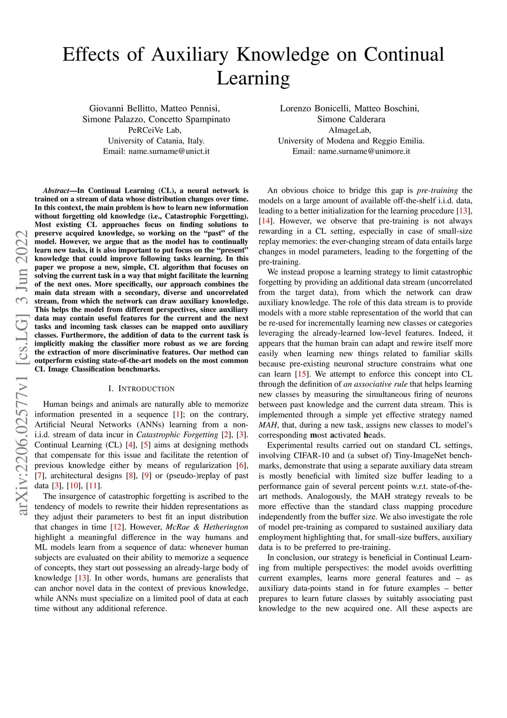 In Continual Learning (CL), a neural network is trained on a stream of data whose distribution changes over time. In this context, the main problem is how to learn new information without forgetting old knowledge (i.e., Catastrophic Forgetting). Most existing CL approaches focus on finding solutions to preserve acquired knowledge, so working on the past of the model. However, we argue that as the model has to continually learn new tasks, it is also important to put focus on the present knowledge that could improve following tasks learning. In this paper we propose a new, simple, CL algorithm that focuses on solving the current task in a way that might facilitate the learning of the next ones. More specifically, our approach combines the main data stream with a secondary, diverse and uncorrelated stream, from which the network can draw auxiliary knowledge. This helps the model from different perspectives, since auxiliary data may contain useful features for the current and the next tasks and incoming task classes can be mapped onto auxiliary classes. Furthermore, the addition of data to the current task is implicitly making the classifier more robust as we are forcing the extraction of more discriminative features. Our method can outperform existing state-of-the-art models on the most common CL Image Classification benchmarks.