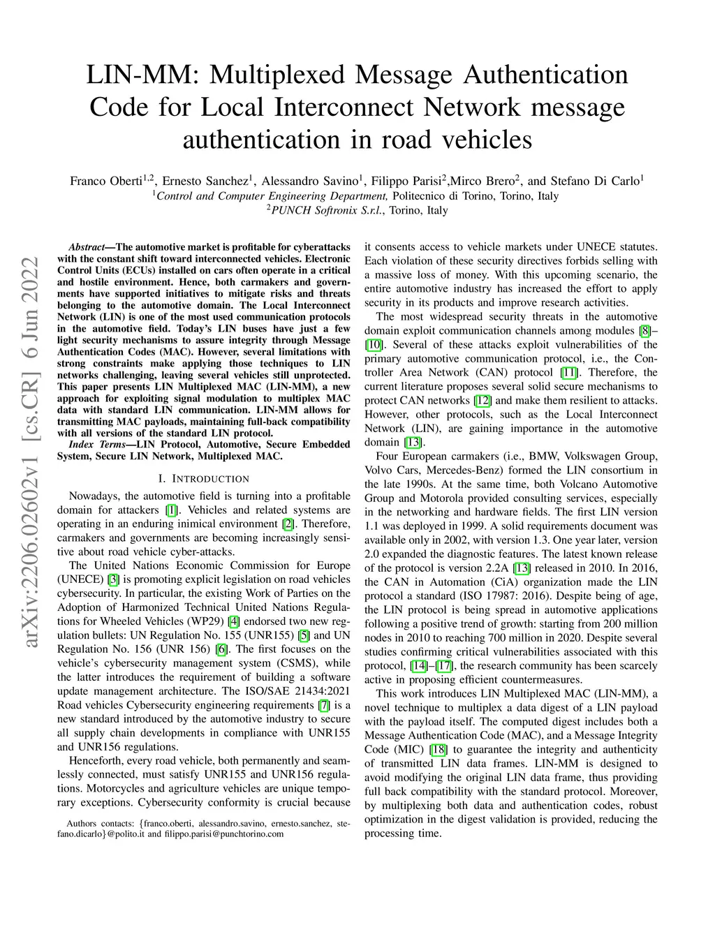 LIN-MM: Multiplexed Message Authentication Code for Local Interconnect