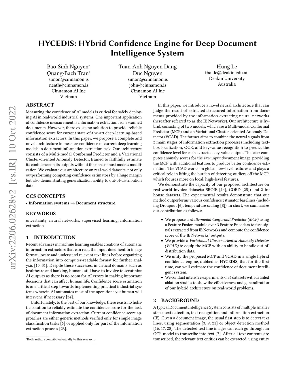 HYCEDIS: HYbrid Confidence Engine for Deep Document Intelligence System