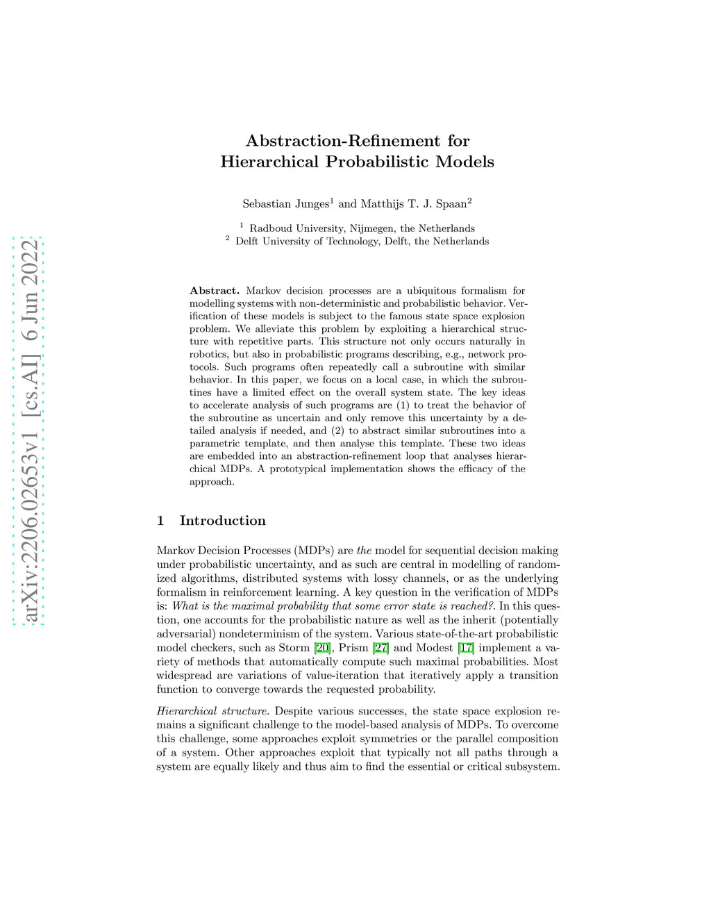 Markov decision processes are a ubiquitous formalism for modelling systems with non-deterministic and probabilistic behavior. Verification of these models is subject to the famous state space explosion problem. We alleviate this problem by exploiting a hierarchical structure with repetitive parts. This structure not only occurs naturally in robotics, but also in probabilistic programs describing, e.g., network protocols. Such programs often repeatedly call a subroutine with similar behavior. In this paper, we focus on a local case, in which the subroutines have a limited effect on the overall system state. The key ideas to accelerate analysis of such programs are (1) to treat the behavior of the subroutine as uncertain and only remove this uncertainty by a detailed analysis if needed, and (2) to abstract similar subroutines into a parametric template, and then analyse this template. These two ideas are embedded into an abstraction-refinement loop that analyses hierarchical MDPs. A prototypical implementation shows the efficacy of the approach.