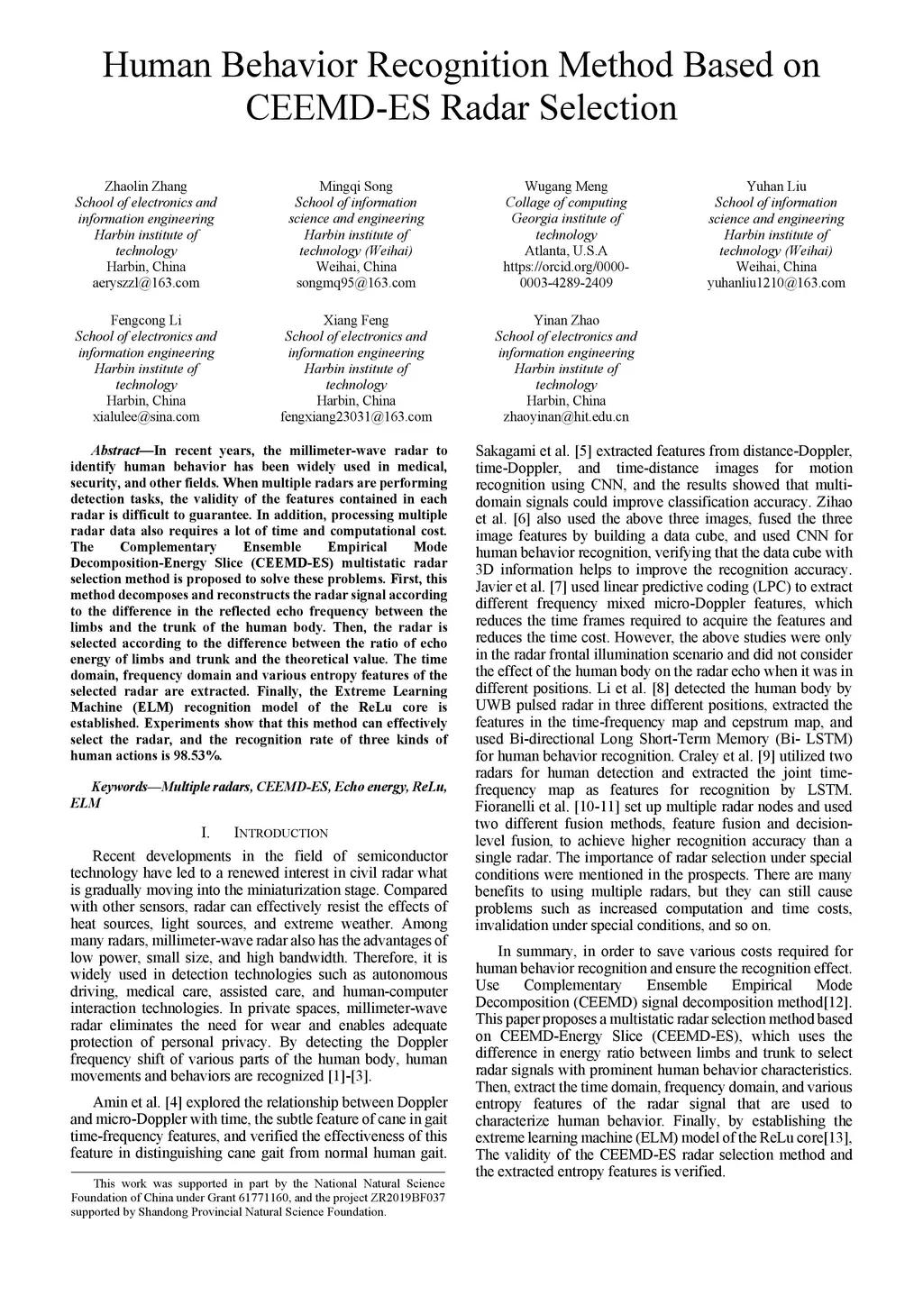 Human Behavior Recognition Method Based on CEEMD-ES Radar Selection